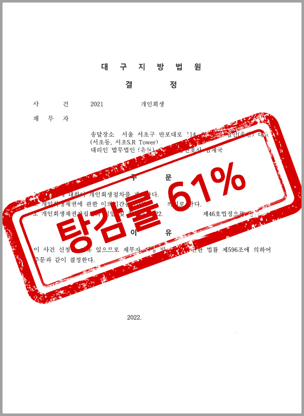 대구 / 60대 남성 / 조리사 / 약 4,142만원 탕감